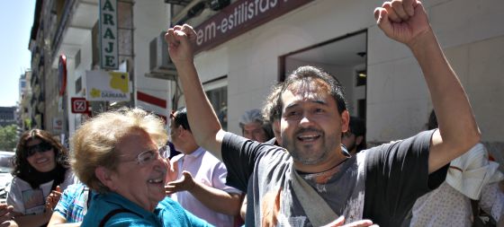 “Soltero y sin hijos, yo no veo bien que le ayuden, todos los casos no son igual”, comentaban dos vecinas desde la distancia. Mari Ángeles, sin embargo, no opina igual: «Como muchos españoles él también pensó que el piso iba a ser la solución de su vida, yo tengo amigos que también les está pasando”, dice comprensiva. Cuando tras aplazarse el desahucio Castaño ha salido a dar las gracias a los cuarenta activistas que se han acercado a su portal, ambos se han fundido en un fuerte abrazo.