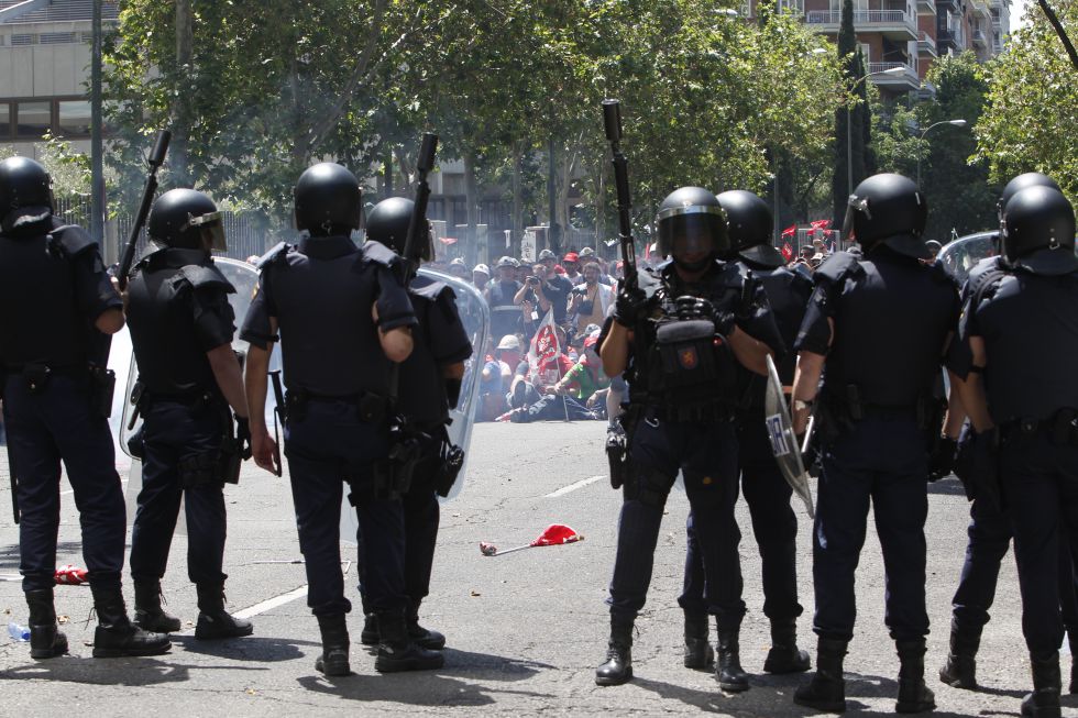 La Policía desplegó un importante dispositivo, con más de 500 agentes, decenas de vehículos y un helicóptero. El momento de mayor tensión sucedió cuando la policía cargó para disolver una sentada pacífica frente a la puerta principal del Ministerio de Industria. «Nosotros no hemos provocado. Nos han hecho lo mismo que a los del 15-M. La respuesta de la policía ha sido desproporcionada», denuncian los mineros.