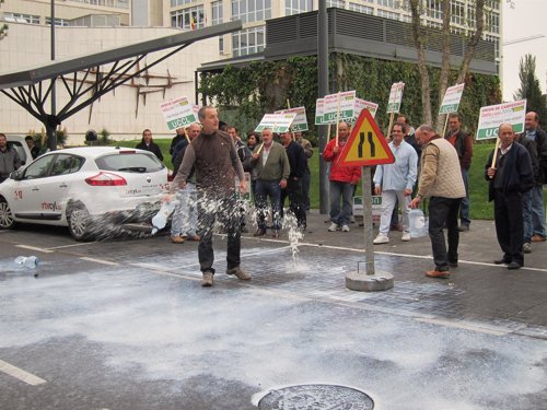 Durante la concentración programada ante la Delegación del Gobierno, los dirigentes de UCCL han entregado al delegado del Gobierno, Ramiro Ruiz Medrano, un manifiesto reivindicativo para que, a su vez, se lo remita al ministro de Agricultura, a quien reclaman la convocatoria de esa mesa negociadora.