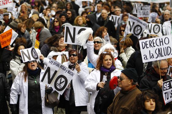 Esta semana la Confederación Estatal de Sindicatos Médicos (Cesm) ha instado al ministerio a intervenir en el conflicto de Madrid, pero también en otras autonomías con frentes sanitarios abiertos, como Asturias o Andalucía. La Cesm se ha unido a la convocatoria del Foro de la Profesión Médica y a la Organización Médica Colegial —agrupa a todos los colegios de España— para realizar una gran manifestación en Madrid, el 23 de febrero, que convierta la protesta autonómica en una cuestión de ámbito nacional. Otras comunidades gobernadas por el PP han planteado paquetes privatizadores de la gestión sanitaria. Castilla-La Mancha, por ejemplo, anunció que cedería la gestión de cuatro de sus hospitales a empresas. Lo hizo antes que Madrid, pero aún no lo ha puesto en marcha. Ignacio González ya tiene el presupuesto y la ley que lo permite aprobadas.