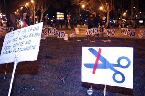 Al cubrir solo la parte nocturna de la manifestación del 23F, no pude ser testigo de la exitosa congregación de todas las mareas confluyendo por las calles de Madrid, que es realmente lo esencial de las marchas. Lo que se imprime en manifestaciones como esta, es que la gente de todas las franjas de edad, condiciones y diferencias ideológicas, muestran su hartazgo a la dictadura de mercado impuesta desde el Gobierno y que de alguna manera quieren ser partícipes de un cambio.