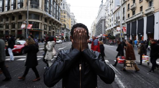 Miércoles, 8 de enero. Sobre las doce de la mañana en el metro Embajadores de Madrid. Uno de los agentes ordena a Yafar, camerunés de 29 años, darse la vuelta. Y comienza a cachearle y registrarle los bolsillos. Entre los papeles que este porta, hay una hoja de periódico cuidadosamente doblada. El policía la deslía y lee el siguiente titular, entrecomillado y con grandes caracteres: “La policía me ha detenido 160 veces por mi cara”. La ilustración del artículo, de EL PAÍS, es la de un muchacho de tez negra que se tapa el rostro con las palmas de sus manos, en la Gran Vía de Madrid. Solo se le ve la frente y el pelo, negro y ligeramente rizado.