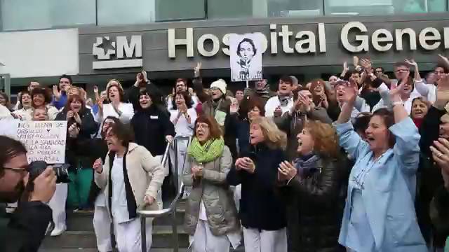 El frío azotaba a los manifestantes que se congregaban a las doce de la mañana frente al Hospital Severo Ocho, en Leganés. Entre abrazos y aplausos el personal del centro y algunos ciudadanos festejaban el cese del Gobierno regional en su empeño por privatizar seis hospitales madrileños. “Es una victoria parcial, vamos a intentar recuperar lo que hemos perdido estos años”, ha declarado Eduardo Canosa, miembro del Sindicato de Auxiliares de Enfermería (SAE).