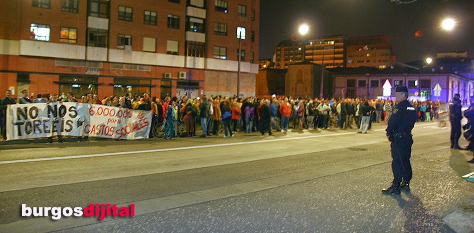 Los manifestantes han lanzado consignas contra el alcalde, su gobierno, Méndez Pozo, y contra todos los que con sus corruptelas roban el dinero de los ciudadanos. Gente de todas las edades y estratos sociales se unen cada vez con mayor vehemencia contra los especuladores y los corruptos y les recuerdan que no se olvida ni se perdona. “Estamos hasta los huevos”, “Alcalde dimisión”, han cantado a una. El dispositivo policial se ha cuidado de impedir el paso de los manifestantes a la acera, manteniéndolos a una cierta distancia del inmueble. Se ha recordado que el bulevar del ferrocarril también fue objeto de especulación (de hecho es uno de los principales motivos de la gran deuda que acumula la ciudad) y que Méndez Pozo impidió la realización de un parking público en la zona de San Agustín, y se ha exigido que se paralicen las obras de la plaza de toros de forma inmediata.