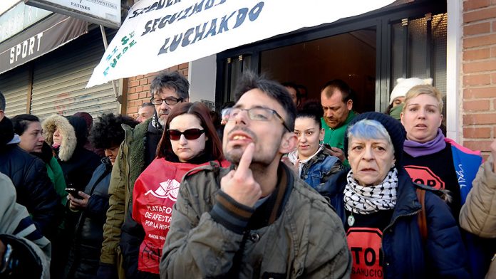 Hoy, sin embargo, no hemos sufrido solo violencia física. Violencia es intentar echar a la calle a tres menores. Violencia es intentar desahuciar por tercera vez a una madre que ha sufrido con anterioridad dos ictus y que ha tenido que ser atendida hoy en la calle por los sanitarios mientras esperaba con ansiedad su desahucio.