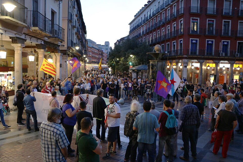 Más de un centenar de personas ha vuelto hoy a solidarizarse con el pueblo catalán en Valladolid. Al grito de «solidaridad con Cataluña», se han vuelto a concentrar en la Plaza de Fuente Dorada para reafirmar su defensa de las libertades democráticas, el derecho a decidir y la República.