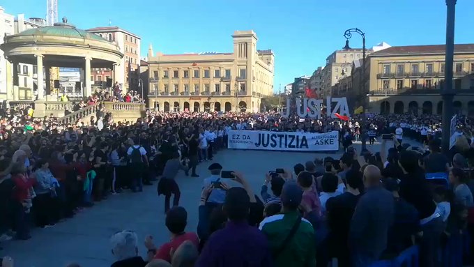 Decenas de autobuses se han acercado a la capital navarra para la manifestación y ya una hora antes del comienzo de la manifestación, era bastante complicado acceder a Pamplona. Miles de personas se han reunido en el inicio de la marcha y otros tantos se han sumado durante el recorrido. Los padres de los jóvenes se han mostrado emocionados en Twitter: “Desde el comienzo de la manifestación no hemos dejado de ver gente en las aceras aplaudiendo, y tanto por delante como por detrás una marea nos acompaña. Estamos muy emocionados y enormemente agradecidos.GORA ZUEK!!” han tweeteado.