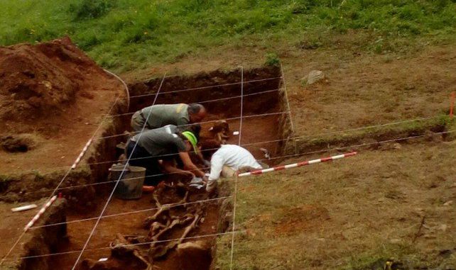 Aunque las labores dieron comienzo hoy, la excavación de la fosa está casi concluida. En ella han aparecido nueve cuerpos, aunque «algunos de los restos humanos están solapados y quizás pudiera haber más», sostiene Martínez. Y estaba en lo cierto, ya que una vez concluidos los trabajos la cifra asciende a doce. Junto a ellos apenas han aparecido objetos.