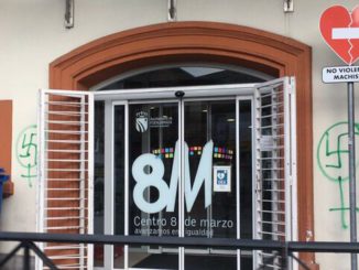 Las paredes de los tres edificios del Área de la Mujer en Fuenlabrada (Madrid) han amanecido esta mañana con pintadas en forma de esvásticas, con [SIGUE]