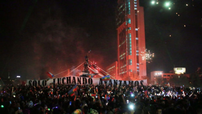 Miles de chilenos recibieron el año nuevo en Plaza Italia, epicentro del estallido social que vive el país desde hace ya más de dos meses. En la rebautizada Plaza de la Dignidad ubicada en el centro de Santiago se desarrolló una verdadera fiesta con música, comida y fuegos artificiales que duró hasta el amanecer. También hubo espacio para homenajear a los 29 muertos desde el inicio del conflicto el pasado 18 de octubre. La noche transcurría con normalidad hasta que después de las doce, un grupo de carabineros llegó al lugar para reprimir y llevarse a manifestantes detenidos. Más temprano, el presidente Sebastián Piñera volvió a negar la sistemática política represiva de las fuerzas de seguridad y pidió «recuperar la amistad y la unidad entre los chilenos».