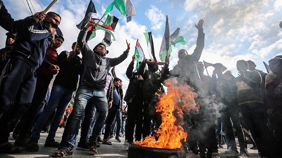 Desde ayer martes, toda la Franja de Gaza y decenas de ciudades cisjordanas han sido escenario de protestas contra el plan anunciado por Trump desde la Casa Blanca, junto al primer ministro en funciones israelí, Benjamín Netanyahu. Decenas de palestinos resultaron heridos en el marco de las protestas.