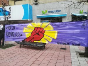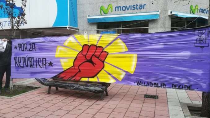 En el marco del amplio plan de actividades que se están desarrollando desde la asamblea de Valladolid Decide para impulsar la consulta Monarquía – República del 21 de marzo, se realizó el pasado sábado día 8 un mural en el barrio de La Rondilla. Simultáneamente a la realización del referido mural se repartieron centenares de octavillas con el texto que reproducimos a continuación, Flyer_Valladolid Decide. Se explicó también el sentido de la iniciativa a través de la megafonía correspondiente y se recogieron los datos de los voluntarios y voluntarias para las mesas que se instalarán durante la consulta del 21 de marzo.
