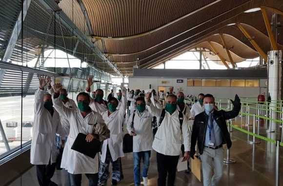 En su cuenta de Facebook, el principal diplomático cubano en Madrid testimoniaría: «Profunda emoción en los miembros de la brigada médica cubana cuando los taxistas del aeropuerto de Madrid, de forma espontánea al ver las batas blancas de los galenos y enfermeros cubanos, comenzaron a aplaudirlos y tocar sus claxons.»