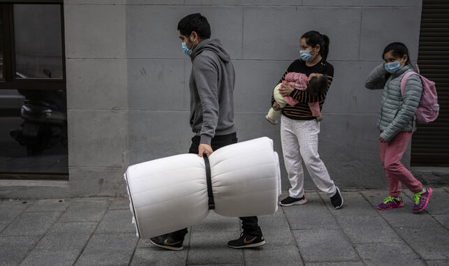 La cuarentena les pilló en una habitación de escasos metros cuadrados de la que debían marcharse. Ana, Marcos, su bebé y su niña de diez años pasaron sus primeros días de encierro en aquel pequeño cuarto pendientes de las plataformas de anuncios de alquiler, ansiosos ante la dificultad de encontrar otro lugar donde quedarse. Lo lograron, pero pocos días después varios agentes policiales aporrearon la puerta de su nueva vivienda. Ana aún estaba en pijama cuando se enteró de que tenían que irse por segunda vez, en un confinamiento en el que ya han dormido en cuatro camas distintas.