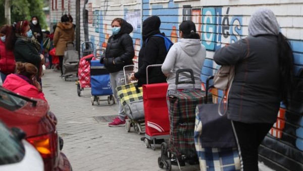 Las imágenes de las largas filas de personas en Madrid, sin alternativa económica esperando –con mascarilla y guardando la distancia social correspondiente– su turno en los bancos de alimentos en barrios o iglesias, para recibir una bolsa de comida gratis, han traspasado las fronteras y han asombrado al mundo. Puede que haya habitantes del estado español sorprendidos, pero la pobreza y la precarización social conviven día a día con nosotros/as. Las mejoras ficticias luego de la crisis del 2008, apenas alcanzan como para tapar huecos de una manera tan efímera que una crisis como la de la pandemia, sume en la miseria a millones de personas, hasta el momento apenas sostenidas por bajos salarios, magras ayudas sociales y empleos precarios.