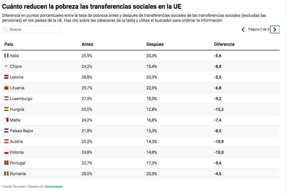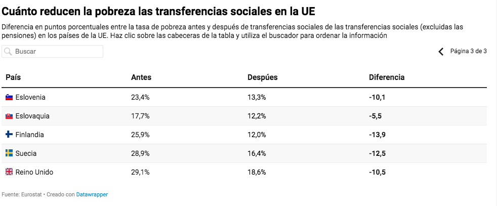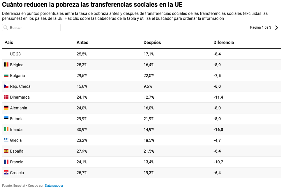 Sin embargo, los datos de la agencia estadística Eurostat evidencian que las ayudas existentes en España no son muy efectivas para reducir la pobreza y nos colocan entre los países de la UE con una menor capacidad para aminorarla mediante las transferencias sociales (excluidas las pensiones). En concreto, el Estado es menos efectivo entre los menores.