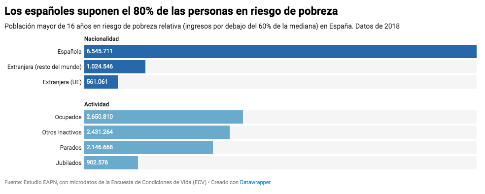 La pobreza no es lo que muchos piensan. No es solo la más absoluta miseria, sino que alcanza a unos 10 millones de personas en España. Diez millones. La Red Europea de Lucha contra la Pobreza y la Exclusión Social (EAPN) desgranó en un estudio cómo es la población que vive bajo el umbral de la pobreza en el país. «Hay un desconocimiento enorme de cómo son los pobres y eso deja mucho camino abierto a especulaciones que tienen detrás muchos intereses», advertía a eldiario.es el autor del estudio, Juan Carlos Llano.