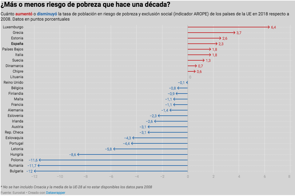El país aún afronta un reto superado por la gran mayoría de nuestros vecinos europeos: recuperar al menos los niveles de pobreza de hace una década, antes de la crisis económica que estalló con la quiebra del gigante financiero Lehman Brothers.