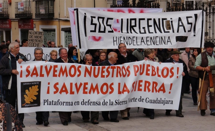 ¿Y qué han hecho para revertir esta situación los sucesivos gobiernos que supuestamente representan a esta tierra? Pues nada, más bien al contrario. En la última década, sobre todo, hemos visto un recorte brutal en nuestros servicios públicos: transporte, educación, sanidad y servicios sociales, llevados a cabo especialmente por el gobierno de Cospedal pero mantenidos y no revertidos por el gobierno de García-Page. Despidos masivos de trabajadores y trabajadoras públicas, hospitales que se caen a cachos, aulas masificadas o personas mayores que mueren sin obtener una plaza en residencia o sin cobrar la ayuda a la dependencia son solo algunos de los miles ejemplos. De cara a la defensa de nuestros recursos, como es el caso del río Tajo, la defensa del medio rural frente al Fracking, los cementerios nucleares o las macrogranjas, no hemos visto más que el abandono y el servilismo total de las instituciones autonómicas a los gobiernos españoles desde hace 40 años, poniendo de manifiesto, como comentábamos antes, que no tienen otro proyecto para nuestra tierra más que el de un desierto, una tierra de paso, un vertedero.