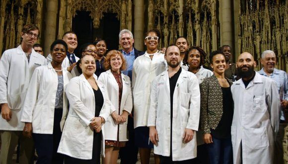 A esa misma iglesia de Riverside asistió 18 años después de Fidel y también invitado por el movimiento de solidaridad y organizaciones afronorteamericanas el Presidente Miguel Díaz-Canel el 26 de septiembre de 2018.