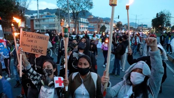 Los colombianos efectuaron la «marcha de las antorchas» en rechazo a los abusos cometidos por el Estado. |