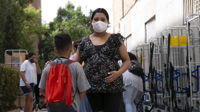 Sarahí es madre soltera y está embarazada de su segundo hijo. Junto a otras madres y niños, hace cola para recoger alimentos en la plaza San Amaro en Tetuán (Madrid) porque hace tres meses que en su cuenta no entra un euro. “Solicité el IMV a mediados de julio, pero todavía no he tenido respuesta, sigue en estudio”, cuenta mientras carga unos pañales en el carrito. “Llevo desde finales de mayo sin nada, porque también me dejaron de ingresar la baja laboral por embarazo de riesgo sin ninguna razón. Estoy desesperada, estamos viviendo en una casa de acogida, pero necesito cosas para mi hijo y para el bebé y no tengo nada para comprarlas. Para colmo, de tanto llamar a la Seguridad Social, me ha llegado una factura de 100 euros que tampoco sé cómo voy a pagar”.