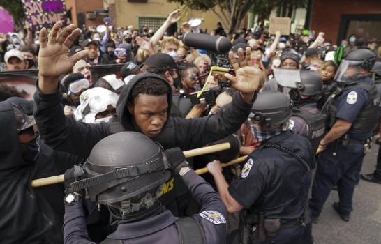 Protestas en varias ciudades de EE.UU ante la decisión de la justicia de no acusar a los policías asesinos de Breonna 25 septiembre, 2020 IzCa Actualidad, Mundo 0 Policías y manifestantes se enfrentan durante una protesta el miércoles 23 de septiembre de 2020, en Louisville, Kentucky. (AP FOTO/JOHN MINCHILLO) Comparte este artículo: Videos. Fuente: Insurgente.org Comparte este artículo: black lives matterBreona TaylorEEUU