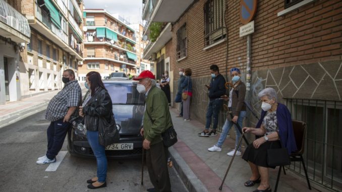 En el centro admiten que está todo el mundo ya muy nervioso: “Todo lo que nos aplaudieron y ahora nos insultan, a veces hasta intentan pegarnos”. Fuera, la gente parece comprensiva: “Pobres, no dan abasto”. Para desahogarse, en los corrillos improvisados se despotrica contra la prsidenta de la Comunidad de Madrid, Isabel Díaz Ayuso. Con todo, este miércoles la cola iba rápido y había menos gente. En el momento de máxima afluencia hubo unas 40 personas. “Estamos flipando con lo tranquilo que está esto hoy. Debe de ser el confinamiento, la gente empieza a asustarse, o es que están cayendo ya todos”. En todo caso, en las zonas restringidas se entra y se sale sin problemas, apenas hay controles.