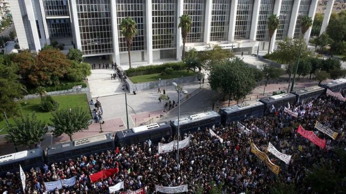 Una amplia zona del centro de la ciudad ha sido cerrada al tráfico como medida preventiva hasta que se disuelvan las protestas y unos 2.000 agentes de Policía han sido desplegados para evitar choques entre los manifestantes antifascistas y posibles grupos de apoyo a Amanecer Dorado.