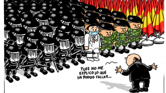 El Gobierno español decidió el viernes 9 de octubre declarar el Estado de alarma, cuestión que conlleva una serie de limitaciones a los derechos de las personas, pero en absoluto supone un incremento del personal sanitario: médicas, enfermeros, rastreadores… ni tampoco de recursos: camas hospitalarias, UCIS,reapertura de centros de salud, consultas presenciales, etc.