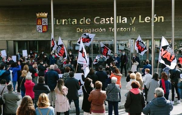 Decenas de ciudadanos se concentraron hoy, a partir de las 13.30 horas, frente a la sede de la Delegación Territorial de la Junta en Soria para protestar por la marcha de nueve médicos de la provincia a otros destinos en un momento en el que se afronta la segunda ola de la pandemia del COVID-19.