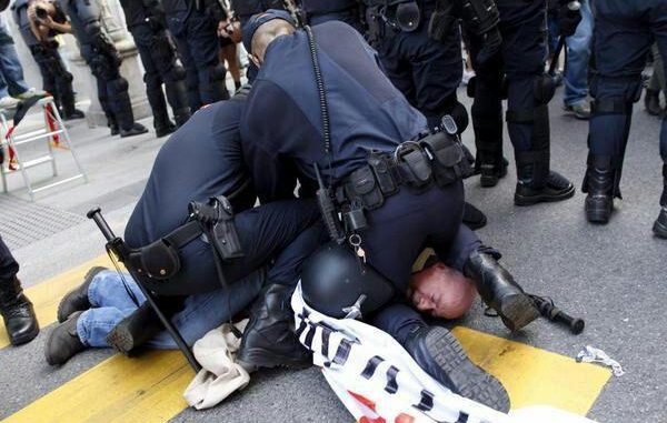 «Hay imágenes en las que se ve cómo golpean a una mujer y le hicieron una brecha de 5 centímetros y 1 centímetro de profundidad», sostiene el activista. «A mí me tiraron al suelo y llegué a tener hasta a tres policías encima de mí, dos de manera permanente, para esposarme», dice Ocampo, que apunta que en la posición en la que se encontró durante varios minutos, en decúbito prono, tumbado boca abajo e inmovilizado, no tenía «ninguna capacidad objetiva de resistencia». De hecho, califica el tipo de detención sufrida como «un acto de tortura express», como ha manifestado durante estas dos jornadas de juicio.