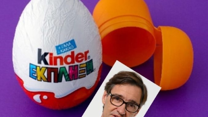 Nos llevan «de sorpresa en sorpresa». Sorpresas que no tienen más capacidad real de sorprender que la de los huevos kinder. Dentro de estos huevos de chocolate se encerraba una cápsula con un muñequito de plástico en forma de animal o un personaje de los cuentos infantiles, montados o por montar. A pesar del recorrido limitado de la sorpresa de tales juguetitos, estos tenían un cierto atractivo para la población infantil.