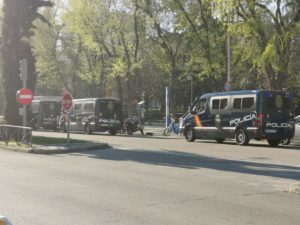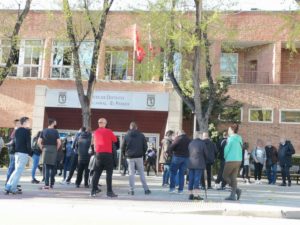 A pesar del poco tiempo, la convocatoria para asistir a la Junta de Distrito de Fuencarral con el objetivo de rechazar la propuesta de Vox, un grupo importante de militantes antifascistas estuvo allí presente para exigir tal cuestión.