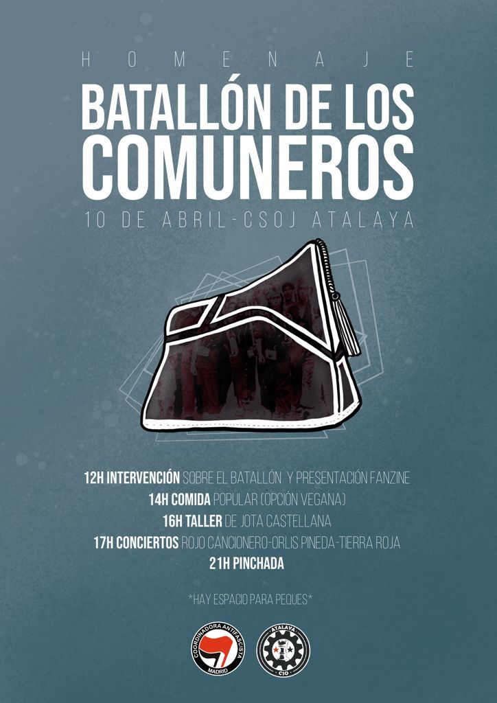Otro año más volvemos a conmemorar a las milicias antifascistas del Batallón los Comuneros, nacido en el Centro Abulense de Madrid hace ya 85 años y cuyo nombre proviene del levantamiento comunero que este año celebra su V centenario. Desde la Coordinadora Antifascista de Madrid organizamos estas jornadas adaptándonos a los tiempos que corren, cumpliendo con todas las medidas de seguridad que implica la gestión de la COVID19, pero sin permitir que esta crisis sanitaria nos frene a la hora de organizar este homenaje.