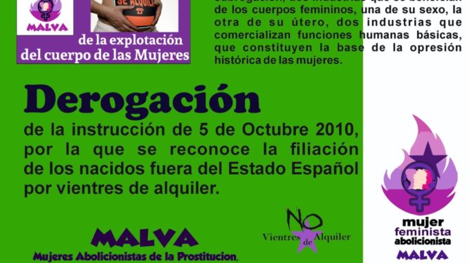 Los vientres de alquiler es una opresión reproductiva que debemos denunciar. EXIGIMOS LA DEROGACIÓN DE LA INSTRUCCIÓN de 5 de OCTUBRE, ilegalizar, perseguir y cerrar las agencias mediadoras y penalizar a quienes acuden a estas prácticas.