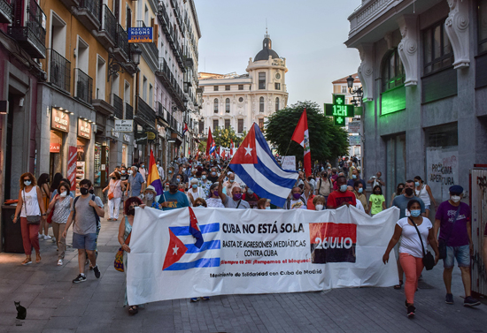Cientos de personas en Madrid rindieron homenaje al 26 de Julio, Día de la Rebeldía Nacional de Cuba, mediante una manifestación que recorrió las calles de la capital, hasta la Puerta del Sol, convocada por una veintena de organizaciones.