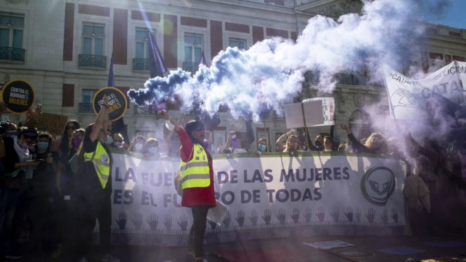 Las demandas incluidas en el manifiesto se han gritado en el Paseo del Prado este sábado y se han leído en la Puerta del Sol, inundada de humo de color morado. Entre las exigencias figuran: el cumplimiento de todos los convenios internacionales que tengan como objeto frenar el “terrorismo machista”; una legislación integral para la abolición de la prostitución, que definen como una “violación pagada”; leyes para la persecución y erradicación de la pornografía, que es la “escuela de la violación”; que nadie pueda reclamar la paternidad de una criatura nacida por vientre de alquiler; la prohibición de técnicas de reproducción asistida como la extracción de óvulos para terceros o los trasplantes de úteros en mujeres vivas; que se acabe con la violencia médica y obstétrica; que se garantice el derecho al aborto; y, que los “deseos individuales o sentimientos” no prevalezcan sobre los derechos de las mujeres. “¡Que no paremos, mujeres, que no paremos!”, han coreado las participantes.