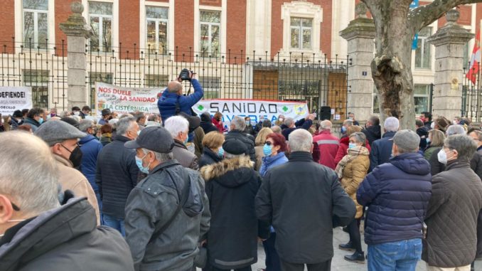 Unas 200 personas se han concentrado ante la Consejería de Sanidad de Castilla y León para reclamar la reapertura del Centro de Especialidades de la calle Trabajo de Valladolid, el reinicio de las obras del centro de salud de La Magdalena, que se amplíe el de Laguna de Duero y se abra uno en La Cistérniga.