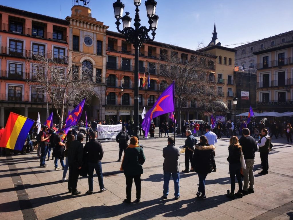 Entre pendones, banderas republicanas y feministas, decenas de militantes del movimiento comunero del siglo XXI realizamos el tradicional pasacalles desde la Plaza de Zocodover hasta el lugar en que se levantaba la casa de Juan de Padilla y María de Pacheco. Durante las intervenciones políticas de Yesca e IzCa se hizo un recorrido por la situación política -el incremento de las tensiones militares, la agudización de la precariedad y la carestía, el desprestigio de las estructuras e instituciones del Régimen del 78, el procedimiento de ilegalización contra Izquierda Castellana, las consecuencias de la ofensiva patriarcal, las principales problemáticas de la juventud…- y se puso en valor el imprescindible trabajo militante en los diferentes frentes de lucha.