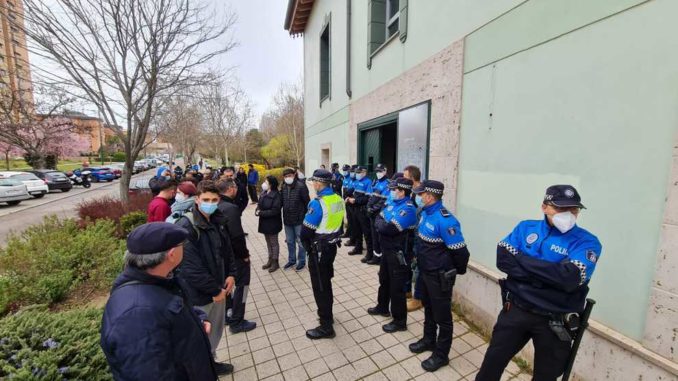 A las 9:30h una dotación de la policía municipal ha entrado en el centro social – La Molinera-, esta dotación estaba compuesta por policías uniformados y de paisano (secreta).