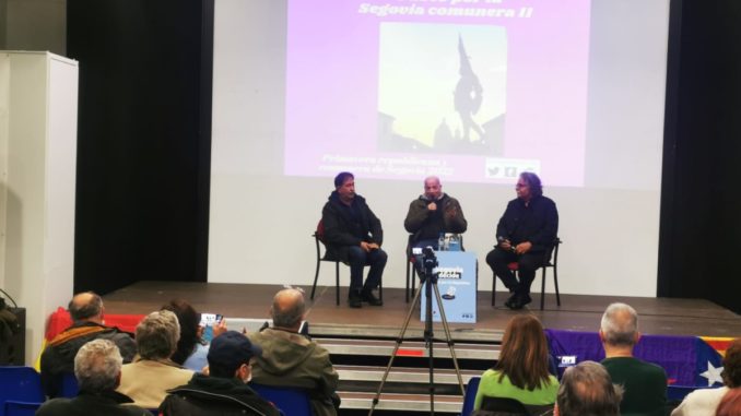 La tarde del pasado martes 19 de abril tuvo lugar un encuentro en la Sala Expresa2, enmarcada en la Primavera Republicana y Comunera que organiza la plataforma Segovia Decide. Ante varias decenas de asistentes, y moderado por Luis Ocampo, participaron en él el escritor Suso de Toro y el ex-diputado de ERC en el Congreso Joan Tardà. El acto tuvo forma de coloquio, abordándose varios ejes de reflexión y debate: cuestión nacional y cuestión social; nacionalismo español y castellanismo; federalismo y derecho de autodeterminación; y el estado de descomposición del Régimen del 78, así como las posibilidades y condiciones para la articulación de procesos constituyentes republicanos. Igualmente, se comentó brevemente el contenido de los libros que ambos ponentes tienen ahora disponibles en las librerías.