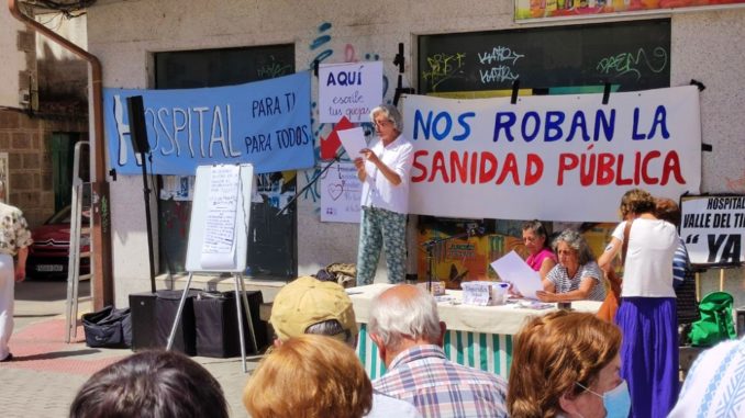 Una protesta en Arenas de San Pedro ha dejado pancartas y lema como “Nos roban la sanidad pública”, “Que vuelvan los especialistas al centro de Arenas”, “Sanidad pública no se vende, se defiende”, “Hospital para ti, hospital para todos” u “Hospital Valle del Tiétar, ya”.