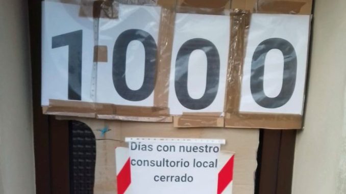 El contador no ha parado de crecer desde entonces, alcanzando ya la cifra del millar de días de cierre, donde tan solo se han realizado once jornadas de asistencia médica presencial.