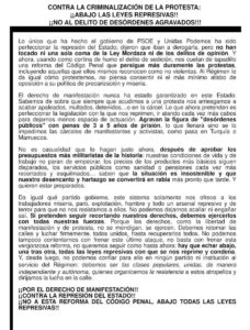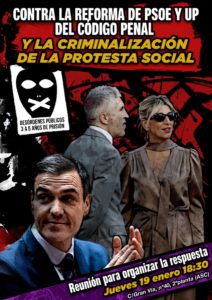 Asamblea 19 de enero, organizando la respuesta contra la reforma del Código Penal y la criminalización de la protesta social (Vídeo) 12 enero, 2023 IzCa Actualidad 0 Comparte este artículo: Comparte este artículo: