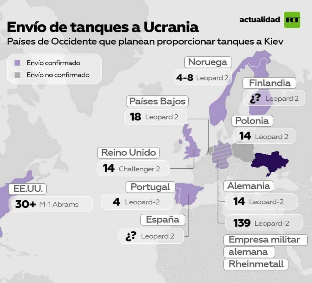 Finalmente, la banda ucraniana dispondrá de sus tanques. No se sabe con precisión el número (parece ser que entre 300 y 400), ni tampoco la fecha exacta en que los tendrán operativos. Las informaciones en los países de la OTAN hablan de tres o cuatro meses. Una vez conseguido el objetivo de los tanques, el Gobierno de Ucrania inmediatamente ha empezado a exigir la entrega de aviones F-16, lo que desde el punto de vista militar es de una lógica aplastante, pues los tanques sin cobertura aérea poco tienen que hacer en una guerra como la del Donbás. El traspaso de unos cientos de tanques a Ucrania, y en eso parece que están de acuerdo los analistas medianamente serios, tendrá por sí solo una influencia muy limitada en la evolución de la guerra. La entrega de aviones, además de los tanques, si tal cosa llega a producirse -y parece muy probable-, puede tener un impacto mayor. Quizás no en el resultado final, pero sí en el encarnizamiento y duración del conflicto.