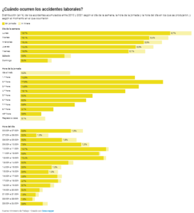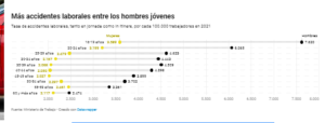 Con la crisis, los accidentes laborales aumentaron y de manera bastante generalizada, como se puede observar según las distintas ocupaciones, con datos todavía solo hasta 2021. Ya sea entre barrenderos como José Antonio, albañiles, transportistas, reponedores o peones de la industria, entre otras profesiones. Trabajar se ha vuelto más peligroso.