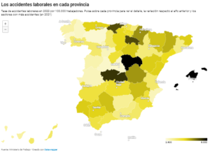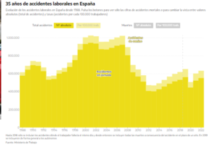 La incidencia refleja un gran descenso de los accidentes de trabajo desde los 2000, que se suele relacionar con el despliegue de la legislación en España de Prevención de Riesgos laborales, de 1995, y también por el “impulso por parte de las Administraciones Públicas de políticas activas en materia de seguridad y salud en el trabajo, así como el compromiso y el esfuerzo de los sindicatos”, subraya un reciente estudio de CCOO, que analiza el aumento de muertes de 2022.