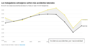 “Y estas son las cifras de los datos oficiales, solo del mercado laboral legal”, advierte Miguel Cruz, presidente de una de las pocas asociaciones de víctimas de accidentes y enfermedades laborales (AVAELA), con sede en Andalucía. Cruz recuerda que hay muchos casos en la economía sumergida y cuando se producen situaciones de extrema precariedad en los que los accidentes no salen a la luz. Lo vimos hace tres años, por ejemplo, con el caso del jornalero Eleazar Blandón, que falleció de un golpe de calor tras ser abandonado a las puertas de un centro de salud de Lorca (Murcia).