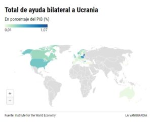La UE ha ofrecido a Ucrania 30.300 millones de euros en ayuda financiera y EE.UU., 25.100, según el Instituto Kiel para la Economía Mundial.